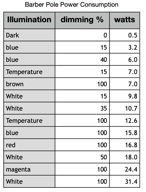 It is illuminated by 3, 1-meter LED strings - red -green-blue. They are enclosed in flexible waterproof silicone with a flat adhesive 0.5 in bottom. They are cut in 2 and wound in 6 spirals around a cylinder I made out of springy aluminum sheet. The cylinder has the same area as the strings 2.75 in dia x 10 in high and is inside a old 6" acrylic cylinder with a diffuser sheet between. They use together about 2.4 amps at 12V at full brightness. Power is from a 12V 3A brick. The cylinder acts as a heatsink and a chimney, being open at both ends. It can get quite warm. The driver module is seperated by about 3 feet. It is based on a heatsink. I have lots of heatsinks, savaged from old monitors and TVs. There is little heat since control is PWM. The size of the chosen one is the smallest to have room for the 3 TO-220 driver MOSFETs and the 5V regulator for the electronics. These are connected by a small board to a barrier strip. The processor is inside a plastic box sized to match the heatsink and its board. It is pretty empty. The temperature sensor probe and the receiver are on pigtails. |