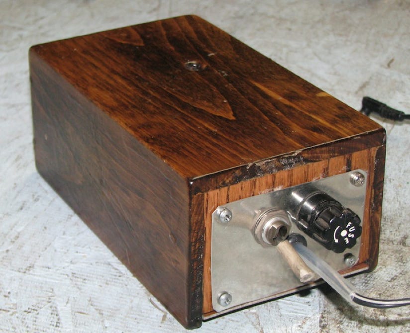 Two rechargeable 16850-sizeLi-Ion cells are packaged in a small box with a charger controlled by a PICAXE 14M. The battery may be used without charger input: the output plug is connected to the battery via a fuse and switch. An isolating diode prevents the battery from discharging back into the charger.
