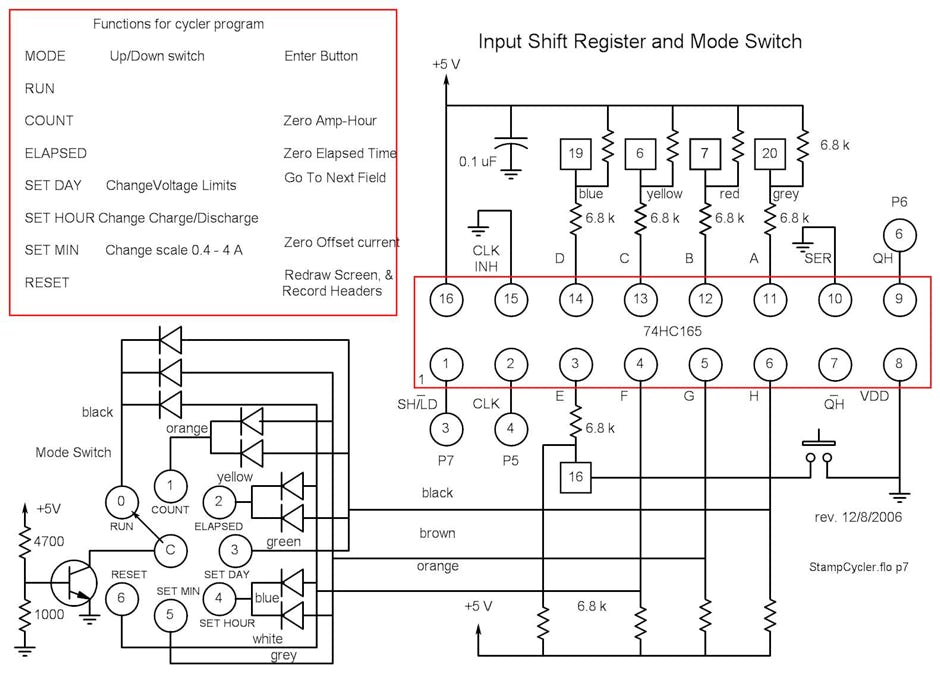 The inputs are sent to the microcontroller via a parallel-to-serial shift register on the interconnect board.