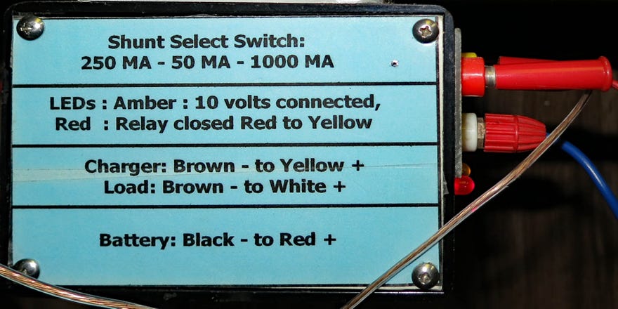 A cable harness connects to a connection box fastened under a low shelf over a table for easy connections. A relay changes between charging and discharging at a preset MAH, and stops discharging a a preset voltage. the previous MAH  is stored for recording. A charging power supply and charge limiting resistor must be provided.