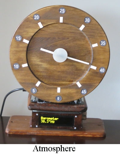 4 digital LED displays are driven using using a Picaxe and a RF receiver to show remote sensor and time data.