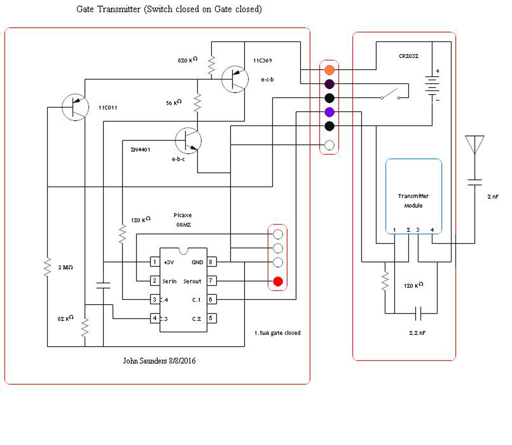 Here is the circuit diagram. I could not find a button which was open when the magnet is in place so this design is dominated by the necessity to reduce the gate closed current as much a practible. This required two PNP transistors in tandem.