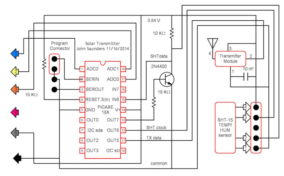The measurements are transmitted on 434 MHz using a Wenshing TWS-BS module