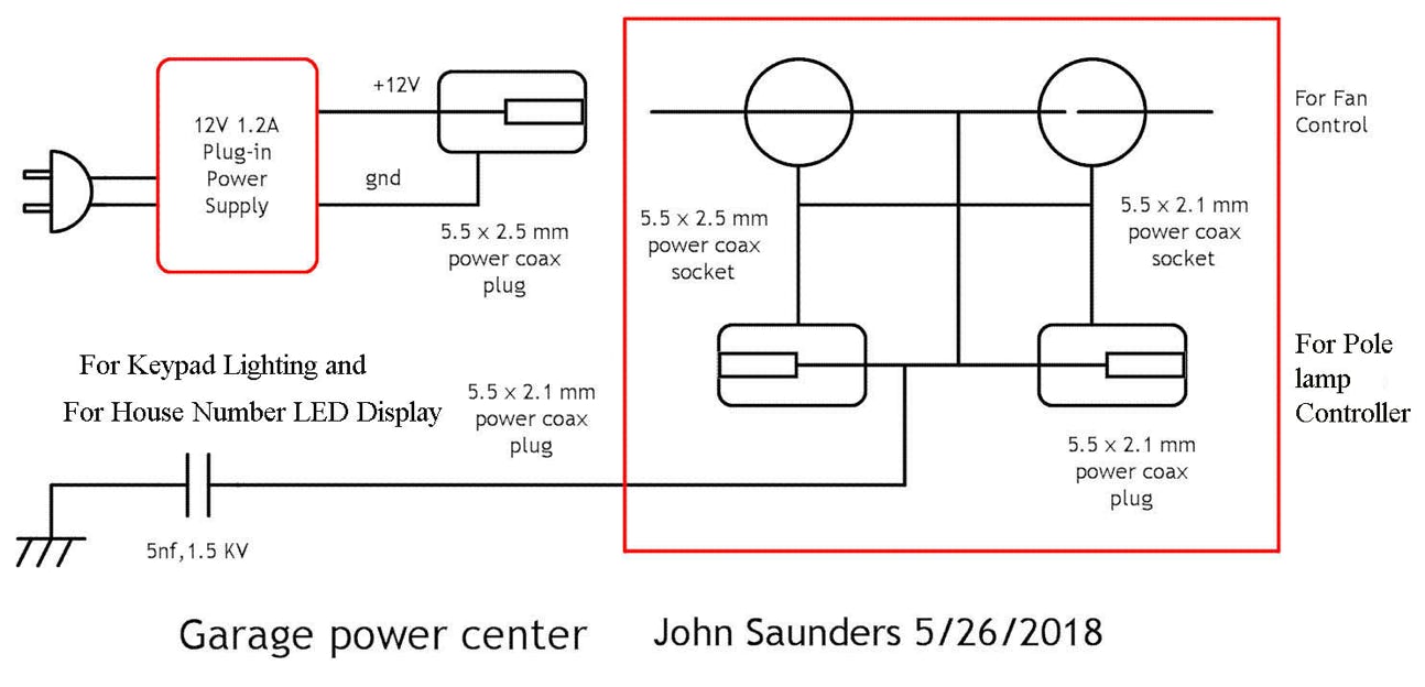 The 12V power supply powers four devices: