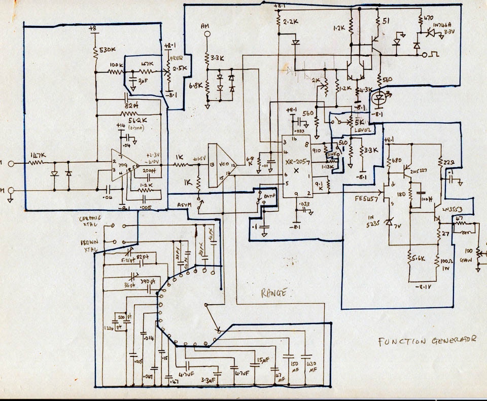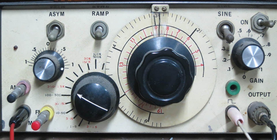 There are two outputs. The main output has a gain control and a variety of waveforms. Its output can also be amplitude-modulated. It’s not a very high voltage and the sine-wave is approximate.