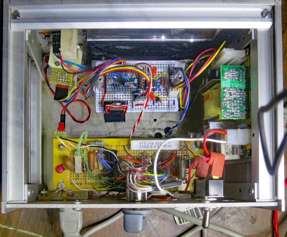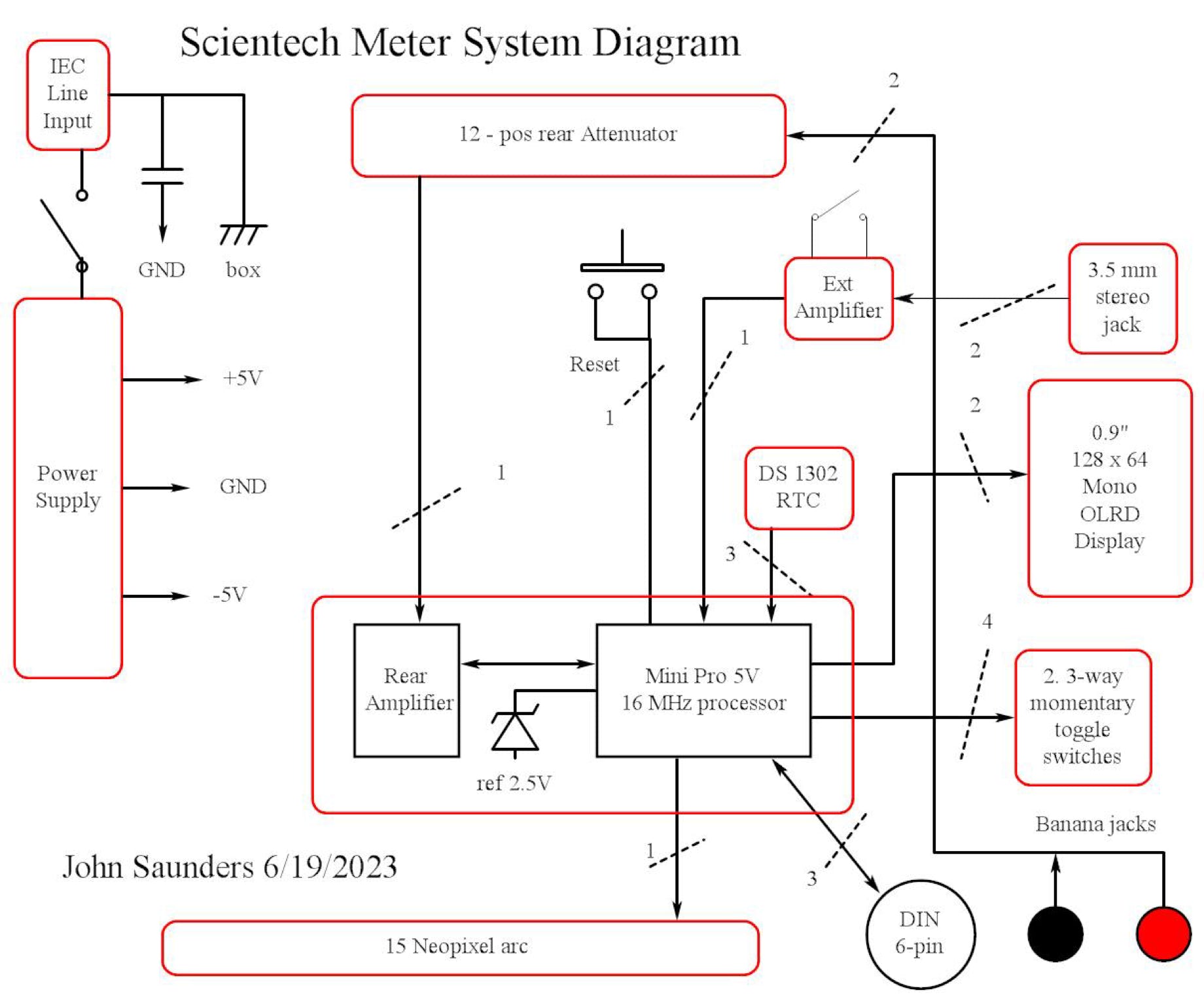 The box contains the line input, switch, the power supply, Attenuator, and the External Amplifier.